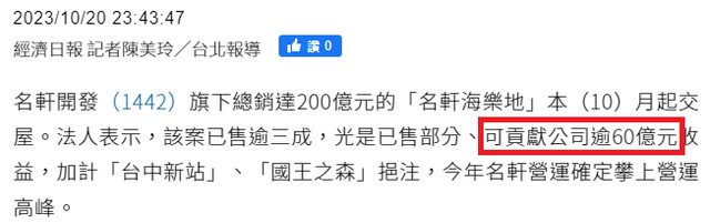 配合10/20新聞,估已售逾60億,應該是一個可信的數字
