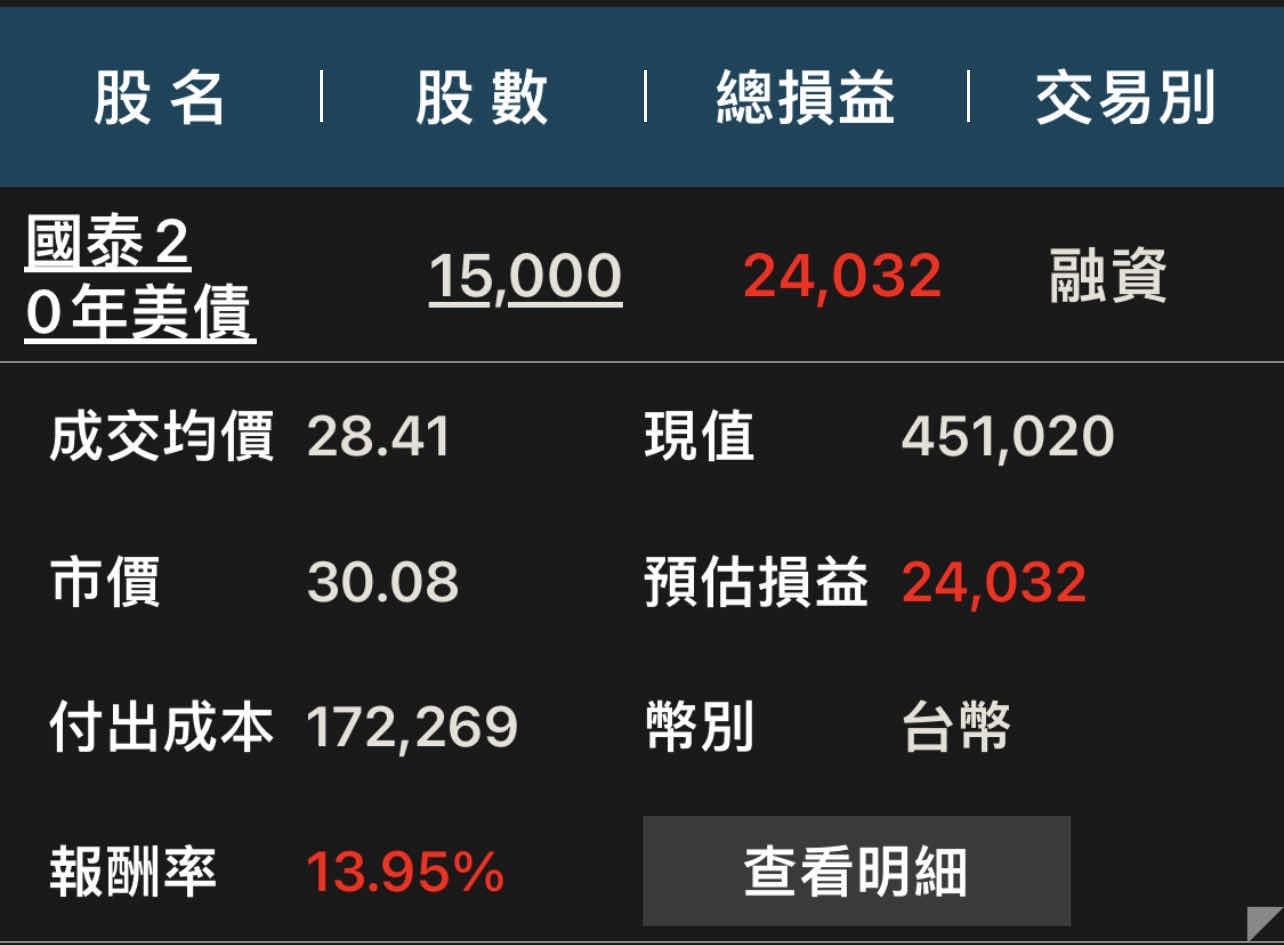 推 jose777 : 太強啦,股也賺,債也賺,做多才是硬道理 11/09 15:48
