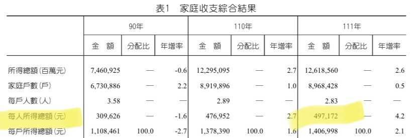 → symeng : 主計總處說111年台灣家戶所得中位數為94萬 05/29 21:14
