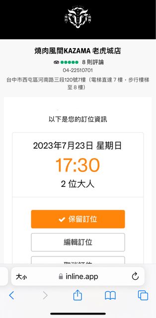 標題[贈送] 燒肉風間老虎城7/23 17:30訂位