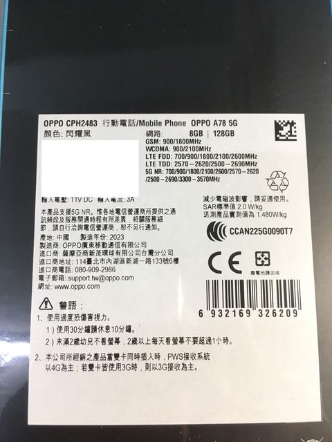 欲售物品:OPPO A78 5G 8g+128g (閃耀黑)