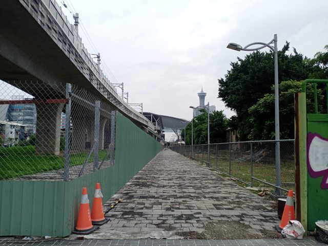 路廊便道周邊的雜草也清理過,不過此段路廊便道不在高架鐵道正下方,遮蔭效果待考驗(