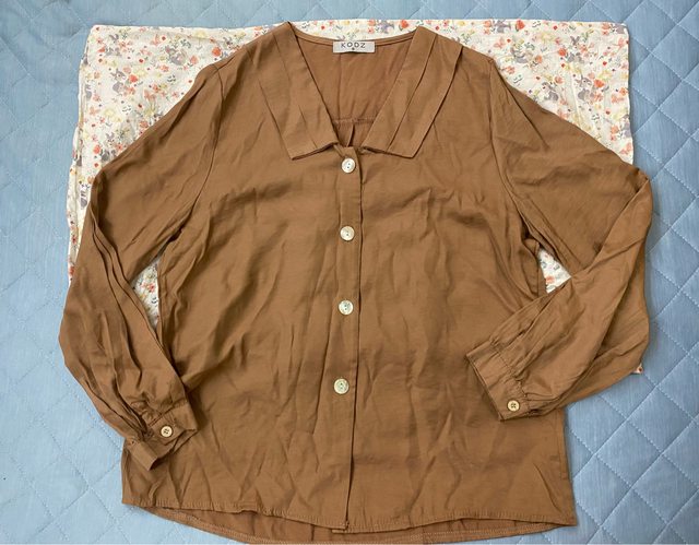 貝殼釦可可色襯衫
