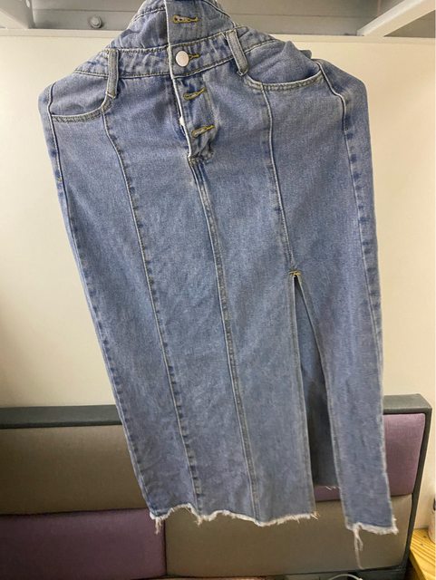 高腰牛仔開叉長裙
