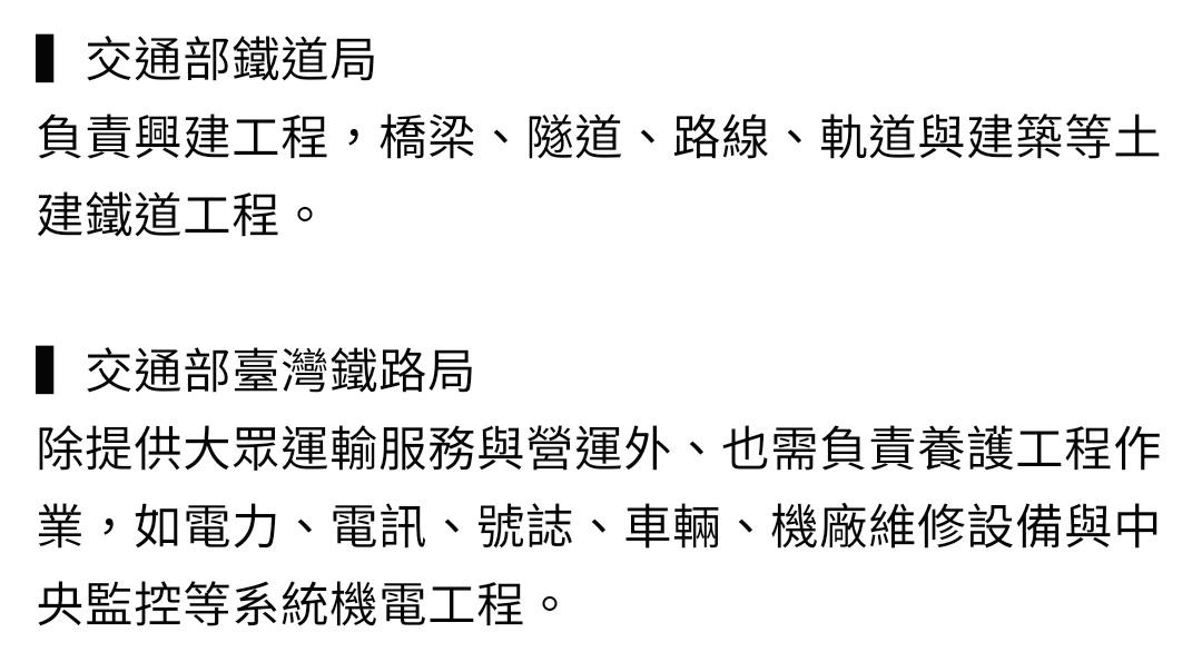 → julian213456: 鐵道局負責新建,台鐵局營運,雖然最近也有鐵道代辦 08/08 18:09