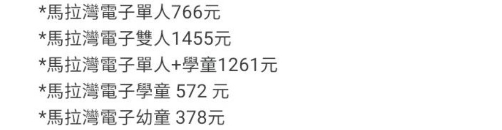 → lcc2712 : 我這邊有一張馬拉灣的門票,售價$550,北區/北屯可 08/11 16:50