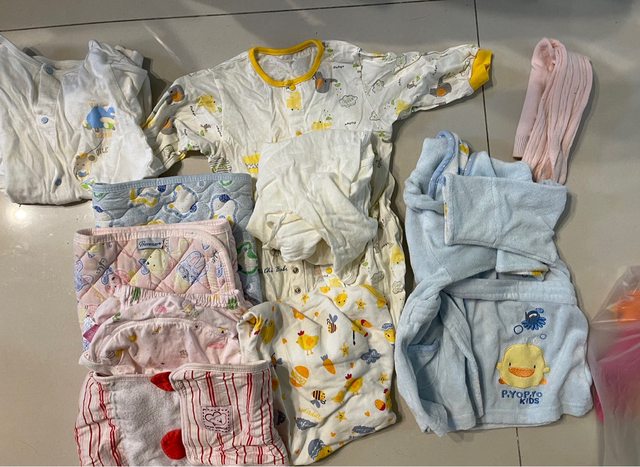 物品說明:二手衣服一批,有小浴袍、寶寶包巾、長袖衣服居多….等,照片只拍出一部
