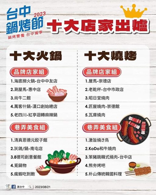 忽然發現台中鍋烤節的票選名單好像出來了