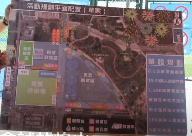 觀賞區初步在施放地點中央公園規劃2主場地及周邊11處自由觀賞區,合計約可容納近百萬
