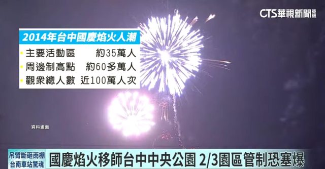 標題[新聞] 國慶焰火觀賞點 中市府規劃2主場11處自