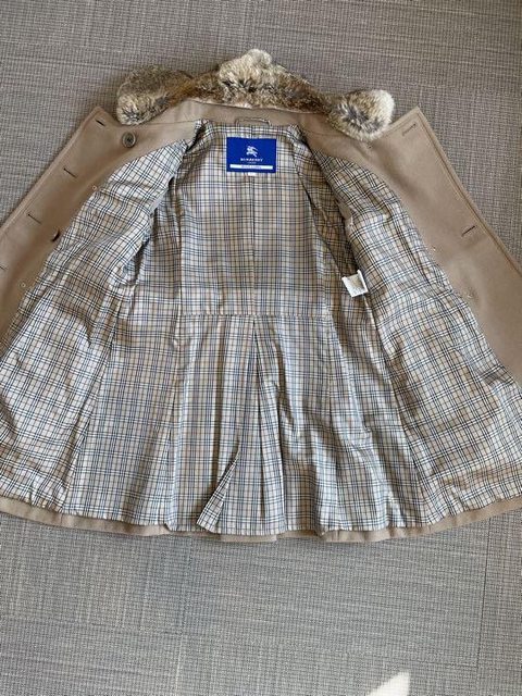 36號 穿著少於10次 很新 已送乾洗 毛90% 毛領是兔毛 很柔軟 有別於一般市面 毛領可拆 袖子可反摺 每顆釦子都有加強釦固定 內裡是經典格紋 5.Burberry 玫瑰粉中長風衣 7998含店到店運費(可全家 萊爾富 OK 取貨)