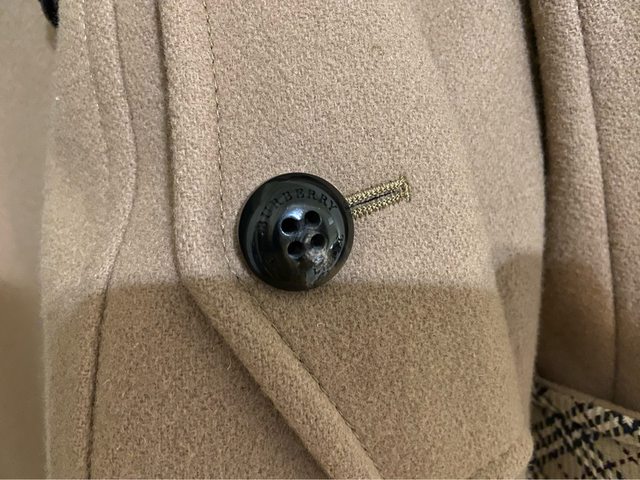 38號 九新 已送乾洗 75%毛 日本製 這是屬於比較輕薄的毛衣 拿起來很輕 類似小羊毛的感覺 但穿起來很暖和 袖子上有釦子 可以將袖長捲起變 4.Burberry blue label 經典羊毛大衣 4998含店到店運費(可全家 萊爾富 OK 取貨)