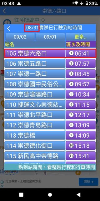 但在35~43分這之間,卻忽視錯過了發車點近在咫尺且6:40穩定發車的132號。