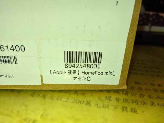 廠牌型號:APPLE HomePod mini(太空灰)