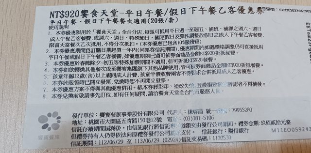標題[交易] 饗食天堂(平日午餐,假日下午茶)