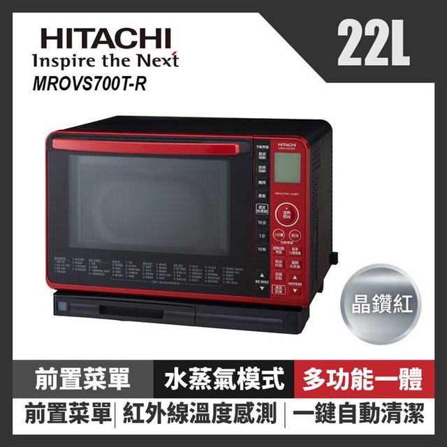 HITACHI 日立 22L過熱水蒸氣烘烤微波爐MROVS700T 晶鑽紅