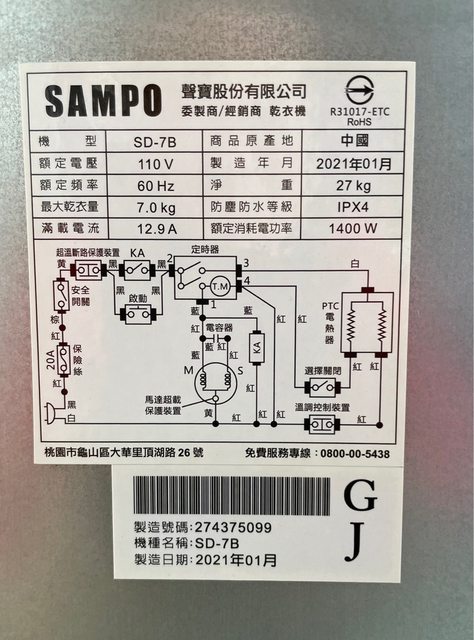 標題[商業] 大里、南區、霧峰/中古聲寶7公斤乾衣機