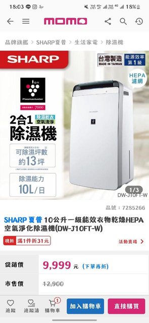 價格$10000 物品Sharp (DW-L10FT-W) 除濕清淨機 價格$8000 還未提供地址可直接寄送 https://i.imgur.com/JTP7xFD.jpeg