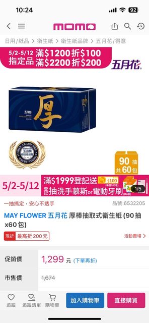 五月花厚衛生紙一箱