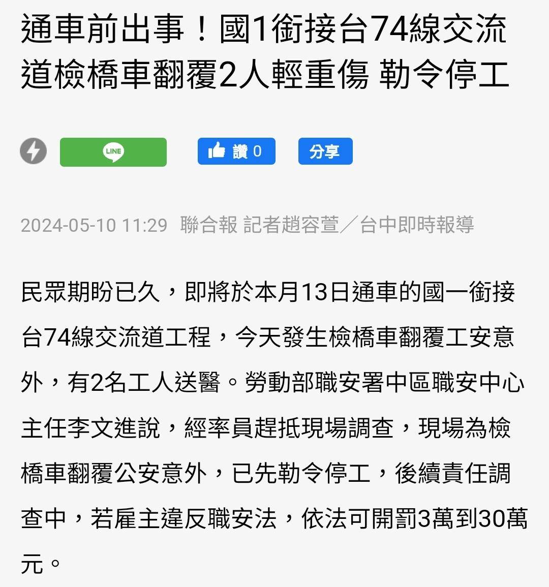 → rayisgreat: 似乎是處理橋面洩水孔時翻覆,緊急 123.192.88.138 05/10 11:22