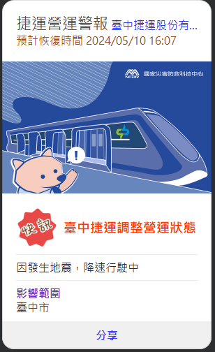 → wooshiverson: 不大但搖蠻久的 南屯 59.126.254.156 05/10 15:54