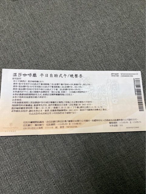標題[交易] 售裕元花園酒店 溫莎咖啡廳餐券*2