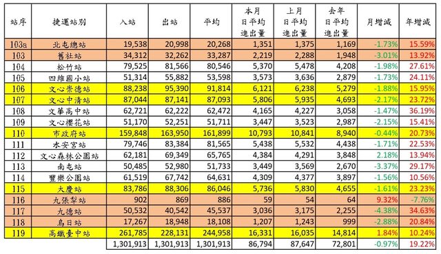 5、本文參考 Sunny821210、TaiwanXDman板友高雄捷運各站旅運量的發文格式。
