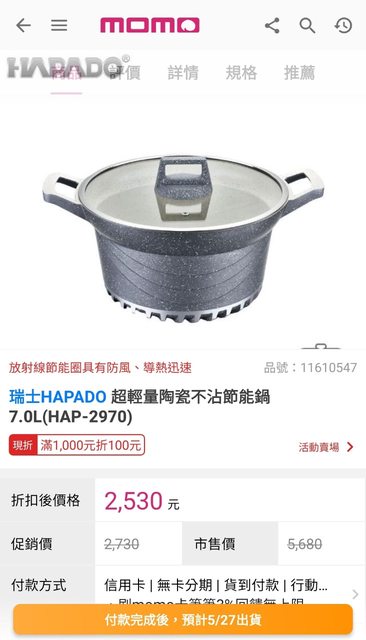 標題[交易] 神岡/HAPADO不沾陶瓷節能通鍋7.0L
