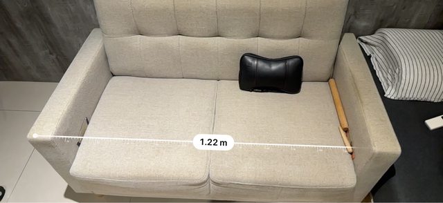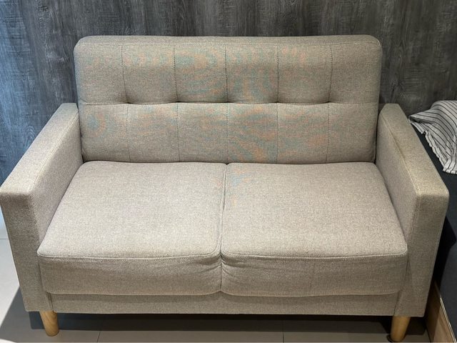 物品說明:左手把內層木頭支架有一點破損,但不影響使用,沙發外觀有使用痕跡,如圖