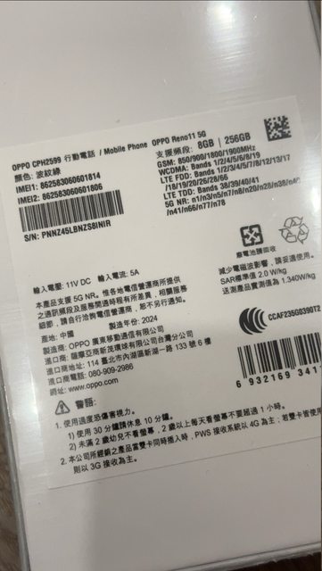 全新未拆OPPO Reno11 5G 波紋綠 (8GB+256GB)