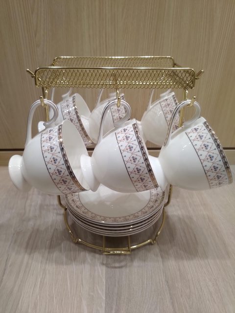 just home 骨瓷咖啡杯+盤6入+收納架/整組$600