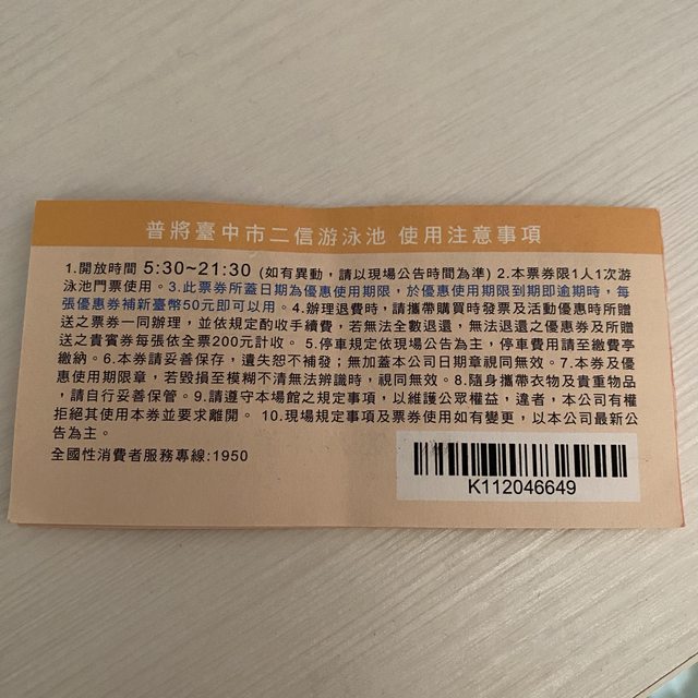 標題[商業] [交易]南區/二信游泳池票券