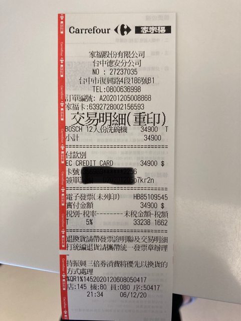 物品如圖所示,為60cm*60cm的洗碗機,2021年初家樂福購入