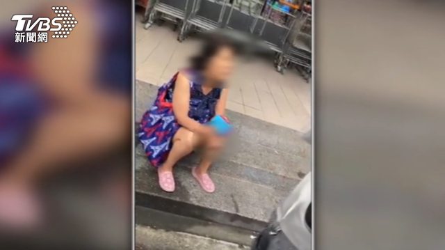 63歲李姓婦人攻擊完逢甲女大生,員警到場她坐在路邊階梯,還不想配合。