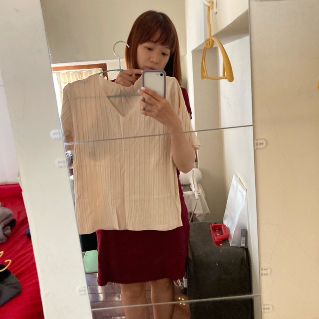 2-淺奶茶色-直條紋上衣(韓店代購買的)