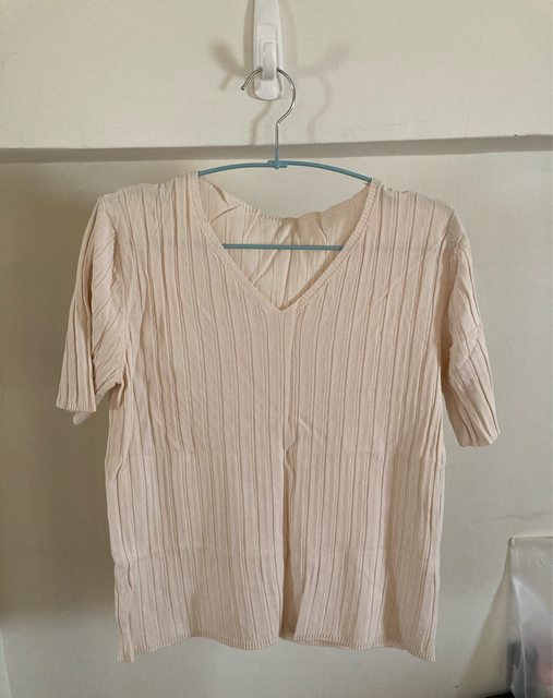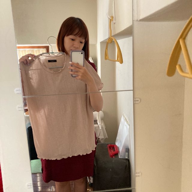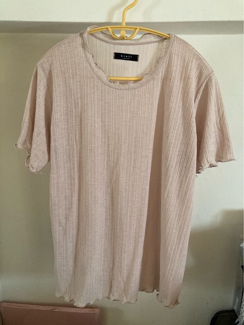 1-奶茶色透膚捲邊短袖 (韓店代購買的)