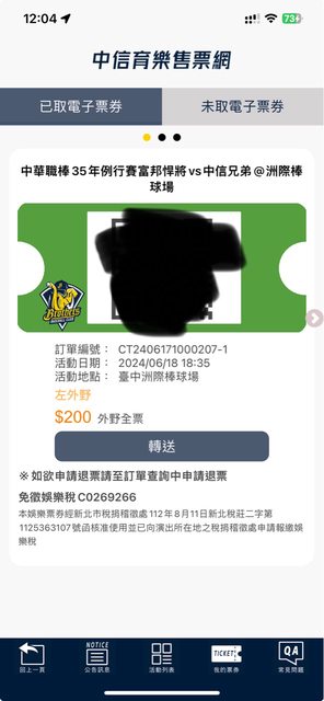 標題[交易] 南屯/今日6/18中信vs富邦外野門票