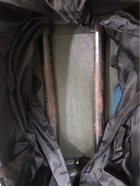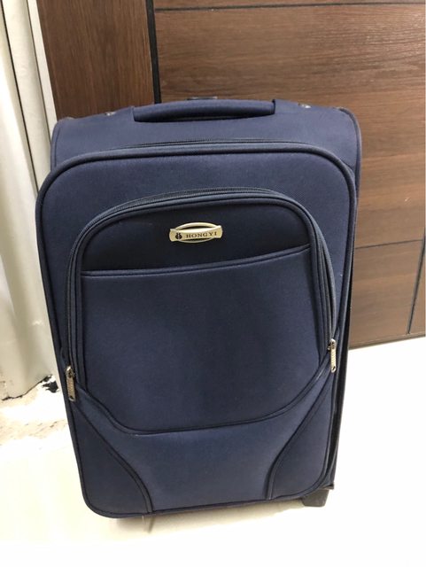 [交易] A.20吋行李箱,深藍色,150元 有裝過清潔用品並打翻,已大致清潔乾淨,內部有一個網袋有破損,行李桿有生鏽痕跡