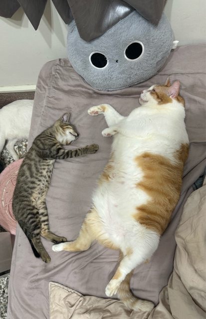 兩隻都喜歡找大貓睡覺