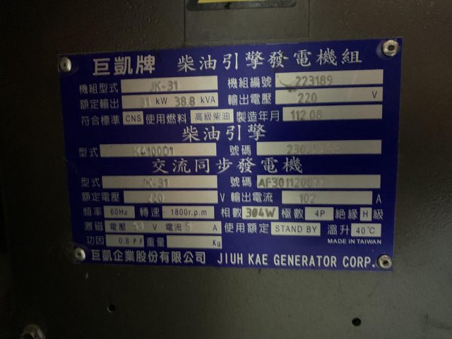 標題[交易] 巨凱牌 柴油引擎發電機組 全新