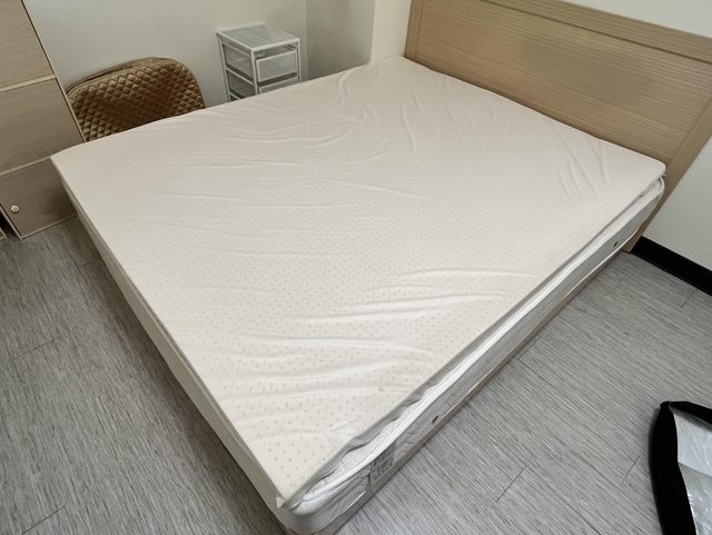 4. costco買的乳膠薄墊,標準雙人床尺寸,厚5cm(圖片上面那個,非下面床墊)