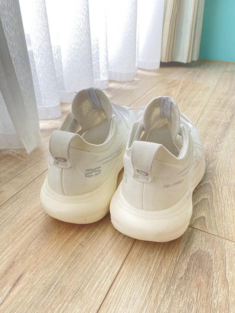 此顏色台灣原價就斷貨 2.亞瑟士 gel-nimbus25 全白限量款 女鞋25.5/售2100元 這雙的底超舒適 但可惜鞋型跟我的腳不合