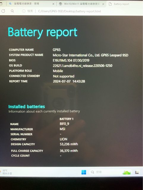 4.電池容量53236mA,殘餘容量36370mA,68.3%。可使用1小時以上。