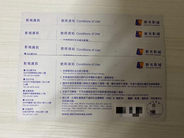 標題[商業] 新光影城電影票4張