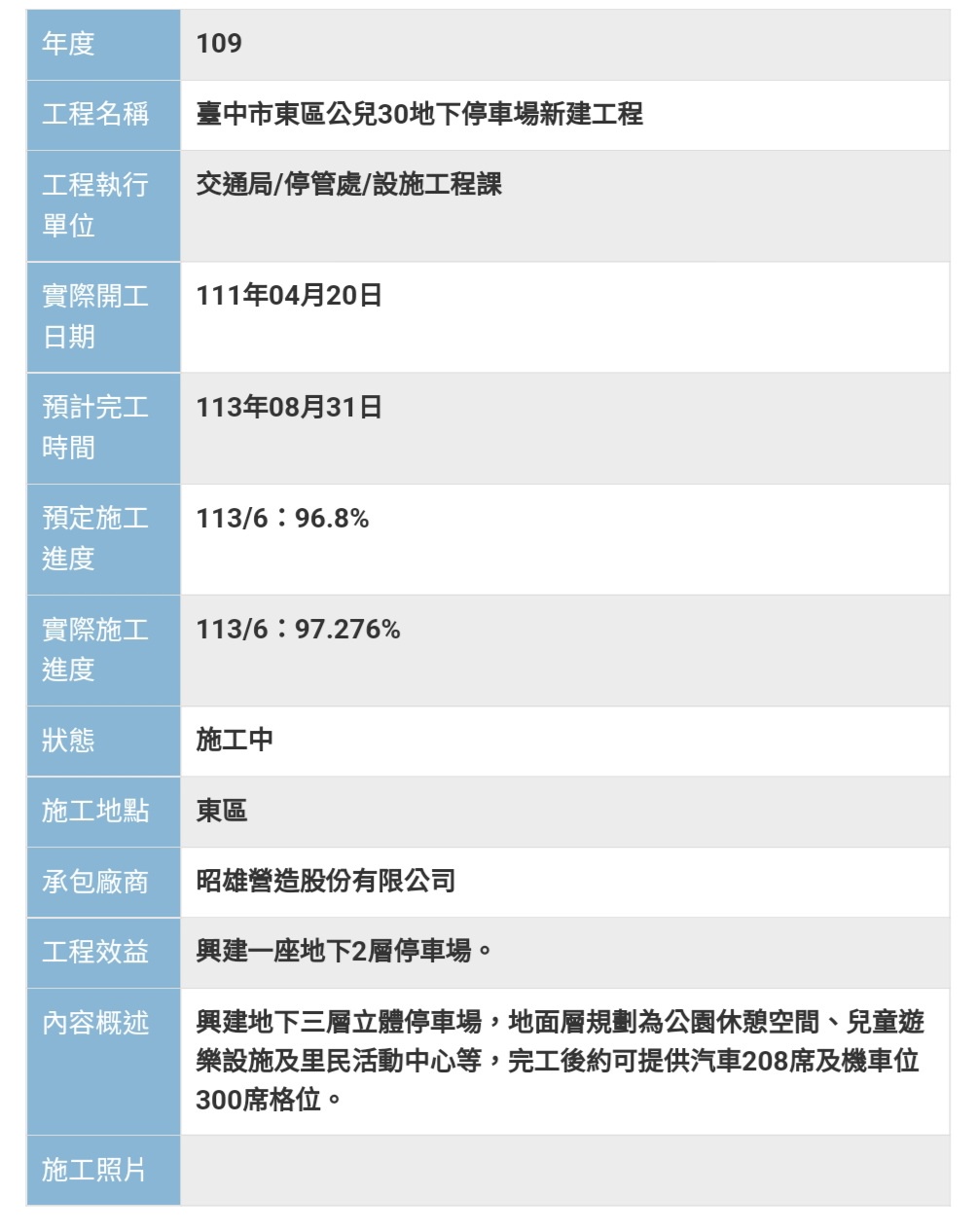 舊社公園地下停車場興建總經費2億2,227萬元,其中地方經費近1.6億元、中央補助6,307萬