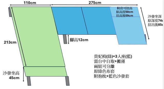 因為更換沙發故便宜出售、背靠可以上下調整、目前是有用沙發布包住愛惜使用中。