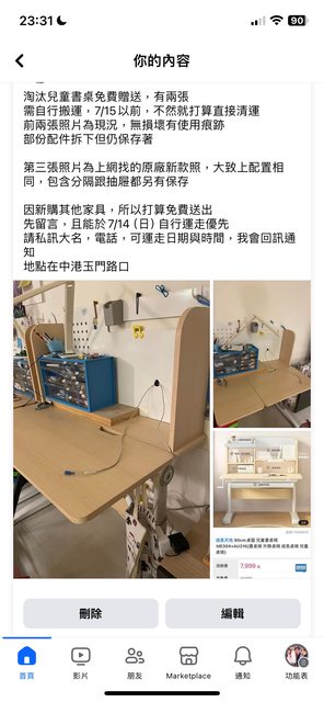 標題[贈送] [贈送]西屯近東海/二手兒童書桌