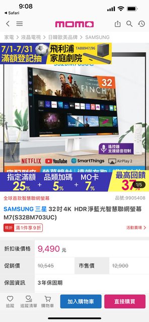 Samsung m7 4K 32寸智慧型螢幕