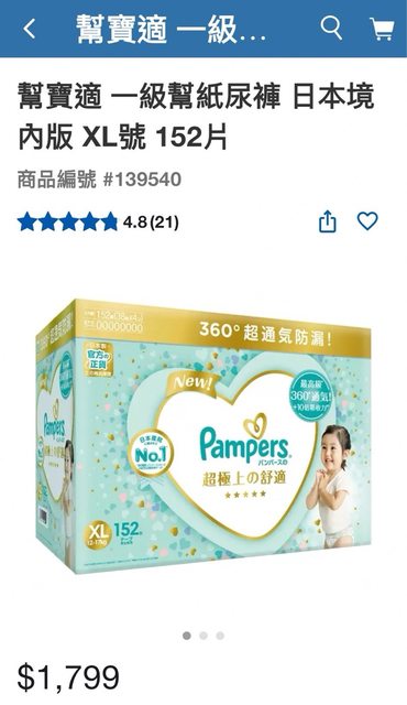 今113年6月於好市多購入的尿布「幫寶適XL黏貼型,不是拉拉褲」多箱,但因上個月小孩