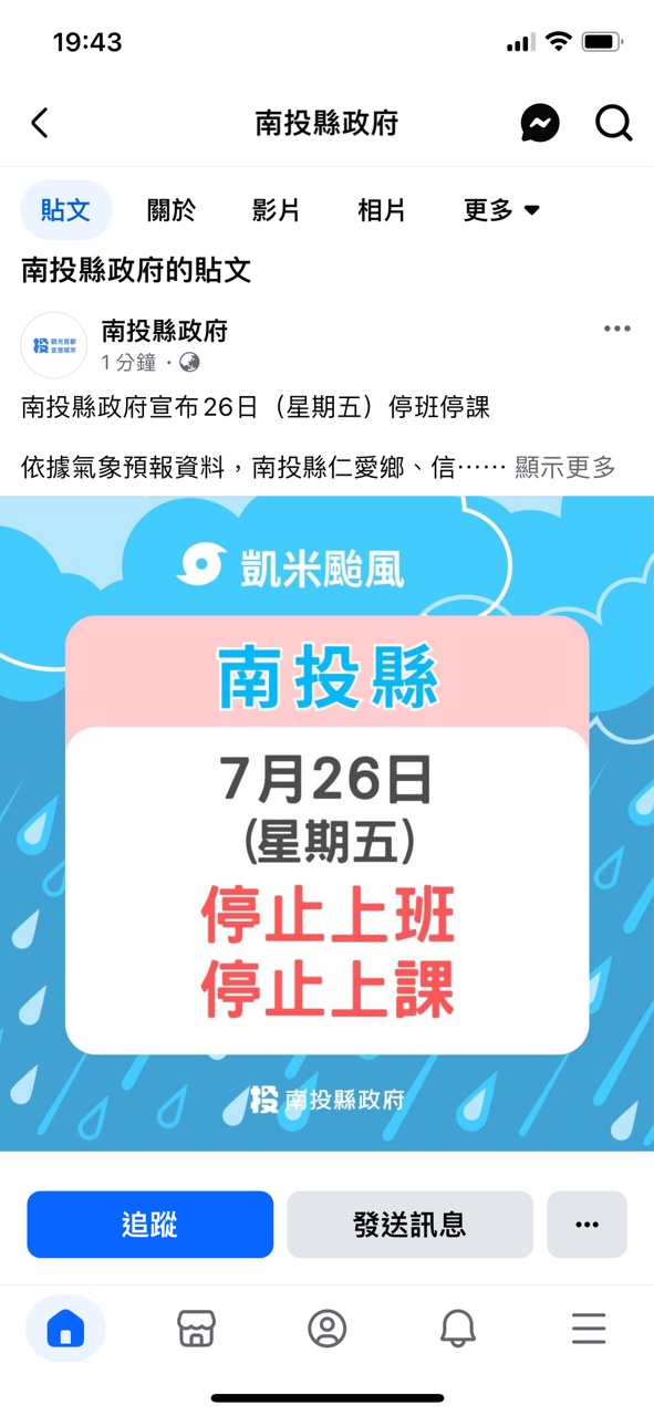 推 kktcbs: 台中8點宣佈,目前僅有和平確定明天停班 49.215.23.133 07/25 19:16